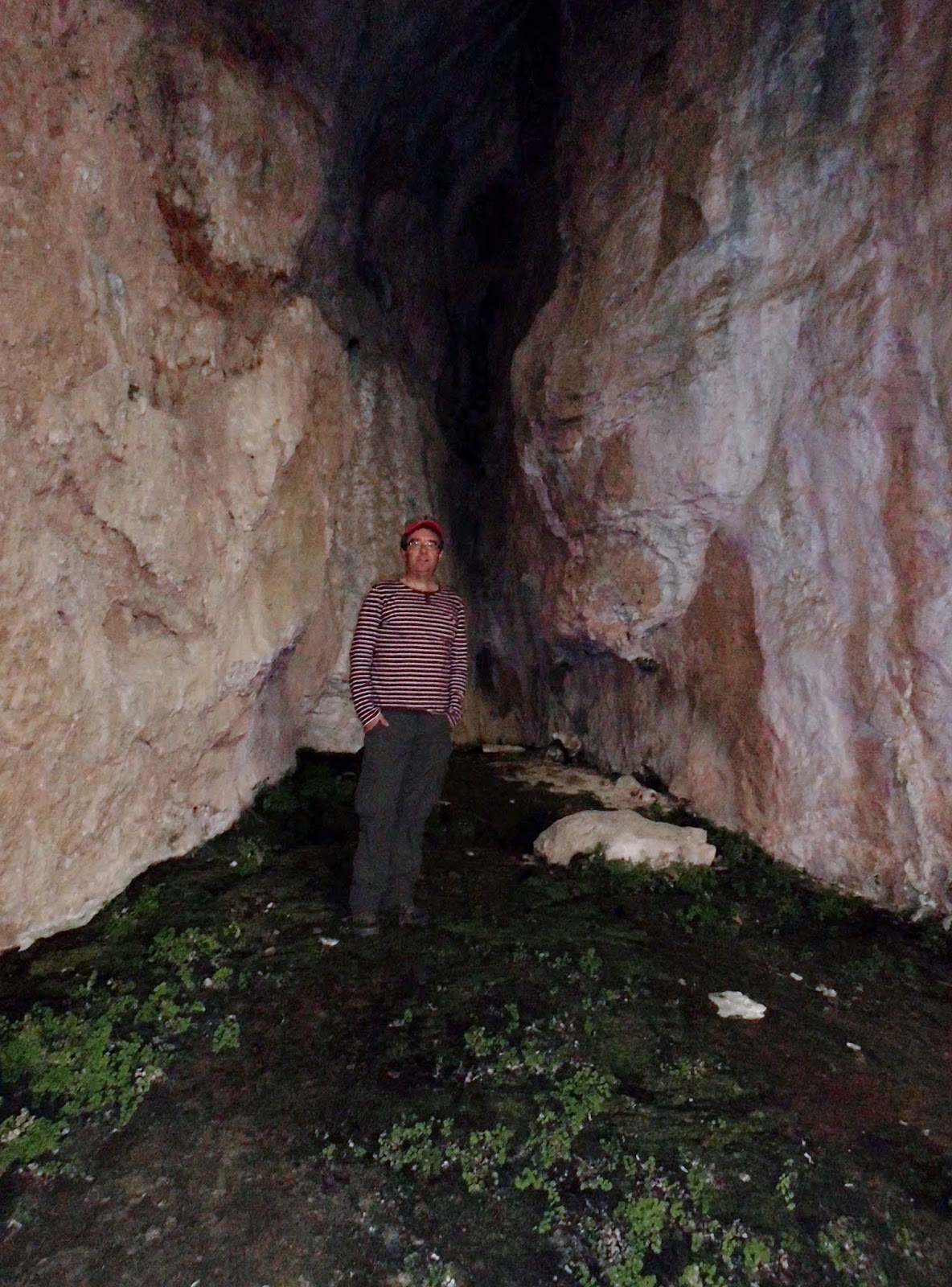 -Iniciamos desde la CF de los Bonales, cerca de la piscifactoría del Aguamulas, por la pista que asciende con el río a su derecha. A los 3'5 km tomamos a la izquierda hacia el Cortijo del Tío Ratón por una buena senda con el Arroyo del Hombre a nuestra derecha. Tras reconocer el lugar, seguimos la vereda ahora bastante empinada hasta llegar en breve al desolado Cortijo de las Grajas, que es un precioso collado que domina los arroyos del Hombre que dejamos y el de las Grajas para el que vamos, dejándonos caer a la derecha por el camino, en unos pocos cientos de metros nos mete en una de esas cerradas encantadora, con cuevas, cascadas y abrigos. En la anterior ocasión pudimos pasar arroyo arriba pero por la erosión de este lugar en las crecidas, esta vez el acceso estaba peligroso, por lo que cogimos por una zigzagueante senda que por la margen izquierda del arroyo nos subió rápido a la zona del Engalvo bajo el Puntal de las Cabras.