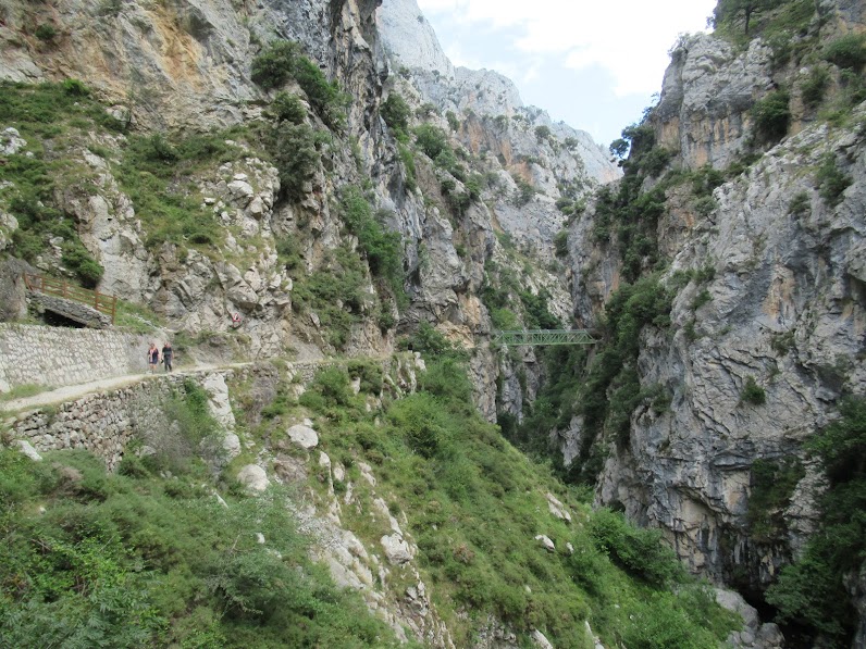 Descendemos seguidamente hasta el Canal del Escalero. Después de la bajada el camino es prácticamente llano pasando por el maravilloso desfiladero, entre canales, túneles, pasarelas y puentes, siempre con el Río Cares a nuestra izquierda, hasta llegar al Puente Bolin que nos traslada a su margen derecha en un breve trayecto con varios túneles, para llegar al Puente de Los Rebecos, tras el que volvemos de nuevo a la margen izquierda.